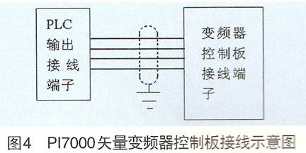 (2)元器件的選擇。根據(jù)三相異步電動(dòng)機(jī)的功率為90kW,額定電流為340A,額定電壓為220V,額定頻率為37.5Hz,最高頻率140Hz,固選逆變器件IGBT為1200A/600V,儲(chǔ)能電解電容為6個(gè)4700μF/450V,并聯(lián)在高壓直流母線兩端,保險(xiǎn)為600A;每個(gè)IGBT的PN端并聯(lián)兩個(gè)3μF/600A的吸收電容。 4.3 PI7000矢量變頻器控制板接線示意圖及其說明 控制過程說明:司機(jī)腳踩油門、換檔、腳剎、倒車等的操作的狀態(tài),其所對(duì)應(yīng)的數(shù)字或模擬信號(hào)傳送到PLC中,PLC通過程序處理,再將所需信號(hào)傳送到變頻器的控制板的接線端子,對(duì)變頻器進(jìn)行自動(dòng)控制,變頻器按照所設(shè)定的功能參數(shù)實(shí)現(xiàn)相應(yīng)的功能。變頻器采用矢量轉(zhuǎn)矩控制,滿足汽車系統(tǒng)的低頻大轉(zhuǎn)矩輸出、高速動(dòng)態(tài)特性,使三相異步電動(dòng)機(jī)帶動(dòng)輪軸快速、平滑的起動(dòng)、運(yùn)行、停止(沒有沖擊力),半坡起動(dòng)力矩可以達(dá)到200%,達(dá)到混合動(dòng)力電動(dòng)汽車的設(shè)計(jì)要求,如圖4所示。