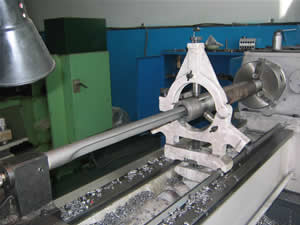 將工件用機(jī)床三爪卡盤夾持,如果工件較長則需中心架支撐。刀具固定在四方刀架或者中托板上,由機(jī)床主軸帶動工件作旋轉(zhuǎn)運動,進(jìn)給運動由大托板提供。這種方式的優(yōu)點是: