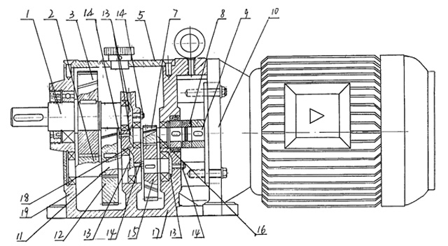 | 本實(shí)用新型涉及一種減速機(jī),包括減速齒輪箱,減速齒輪箱內(nèi)設(shè)有兩級(jí)或三級(jí)齒輪減速機(jī)構(gòu),減速齒輪箱被中間支承壁分為兩個(gè)減速室,第一級(jí)減速機(jī)構(gòu)的高速主動(dòng)輪和與其嚙合的高速被動(dòng)輪安裝在第一減速室內(nèi),第二級(jí)或第二、第三級(jí)減速機(jī)構(gòu)設(shè)置在第二減速室內(nèi),第一級(jí)減速機(jī)構(gòu)的高速主動(dòng)輪通過(guò)其轉(zhuǎn)軸上安裝的兩個(gè)軸承以平衡式安裝方式轉(zhuǎn)動(dòng)安裝在減速齒輪箱前端壁和中間支承壁上,其余各齒輪也均以平衡式安裝方式通過(guò)軸承轉(zhuǎn)動(dòng)裝配在減速齒輪箱前端壁和中間支承壁及中間支承壁和減速齒輪箱后端壁上。由于本實(shí)用新型將高速主動(dòng)輪等各齒輪均采用雙側(cè)軸承支承轉(zhuǎn)動(dòng)安裝的平衡式安裝結(jié)構(gòu),避免了因轉(zhuǎn)軸的擺動(dòng)和扭曲造成的偏載受荷,使整個(gè)齒輪接觸良好,受力均勻,從而大大地降低了噪聲,減小了磨損。 |