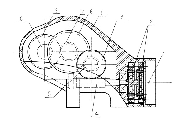 | 一種緊湊型大減速比減速機,它包括殼體和安裝在殼體內(nèi)的減速機構,其特征是:所述的減速機構包括行星齒輪機構、蝸輪蝸桿機構和齒輪機構,行星齒輪機構的輸出軸與蝸桿同軸,蝸輪與蝸桿相配合,蝸輪上固定有同軸齒輪、且該齒輪與大齒輪相嚙合,與大齒輪同軸的齒輪與輸出軸上固定的齒輪嚙合。 |