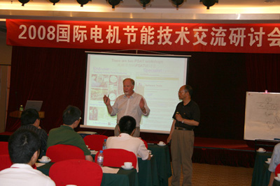 隨后會議進(jìn)入高潮階段由國外專家?guī)硐到y(tǒng)的電機(jī)節(jié)能技術(shù)與企業(yè)溝通