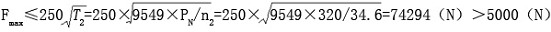 P2 =230kW, 轉(zhuǎn)速 n2 =34.6r/min, 載荷均勻, 每天工作 10h, 每小時(shí)啟動(dòng)三次, 電動(dòng)機(jī)最大啟動(dòng)轉(zhuǎn)矩