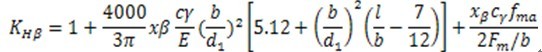 式中:KHβ——接觸強(qiáng)度計算的齒向載荷分布系數(shù),見6.3.2或6.3.3;