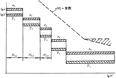 各應(yīng)力水平區(qū)間的接觸應(yīng)力σHL和彎曲應(yīng)力σFL分別按式(B4)、(B5)計(jì)算,大、小輪應(yīng)分別計(jì)算。
