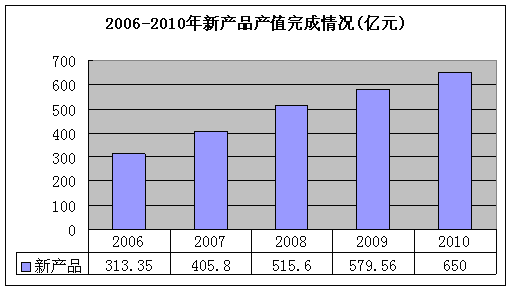 通用機(jī)械行業(yè)“十一五”工業(yè)總產(chǎn)值、新產(chǎn)品產(chǎn)值、利潤(rùn)見(jiàn)下圖(2010年的數(shù)據(jù)是預(yù)測(cè)值)。