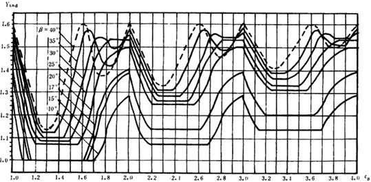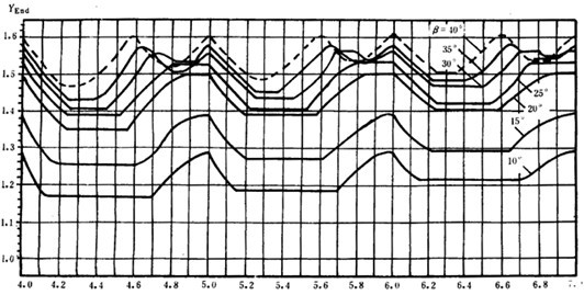 齒端系數(shù)是考慮接觸跡在齒輪端部時,端面以外沒有齒根來參與承擔(dān)彎曲力矩,以致端部齒根應(yīng)力增大的影響系數(shù)。對于未修端的齒輪,YEnd值可根據(jù)εβ(εβ=b/Px)由圖8查。ó(dāng)β不是圖中值時,用插值法查。