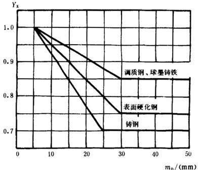 尺寸系數(shù)是考慮實際齒輪模數(shù)大于試驗齒輪模數(shù)而使材料強度降低的尺寸效應(yīng)。其值可按圖16查取。