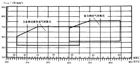 氮化鋼齒輪齒芯部硬度≥300HBS。