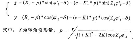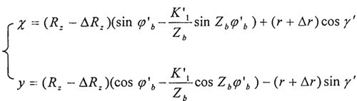 擺線輪的齒廓修形量是影響RV減速器傳動性能的重要參數(shù),首先需建立一個概括上述的前兩種修形方法的通用擺線輪齒廓方程式,只要將標準齒廓方程式(3-l)中的Rz以(Rz-△Rz)代替,K1以K1′=e*zb/(Rz-△Rz)代替,r以(r+△r)代替,即可得到通用擺線輪齒廓方程式為: