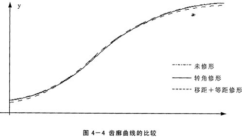 以上三種齒廓修形法中,轉(zhuǎn)角修形法不僅機構(gòu)調(diào)整麻煩,而且不能單獨使用,然而采用適當?shù)囊凭嘈扌瘟亢偷染嘈扌瘟肯嘟M合的方法可使磨削出的齒廓與用轉(zhuǎn)角修形法得到的齒廓相接近,因此在傳動中可使多對齒同時嚙合,并且在齒頂和齒根處均有間隙存在,采用這樣的修形方法磨削擺線輪比轉(zhuǎn)角修形法方便得多。