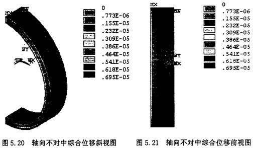 角向不對(duì)中的模擬過(guò)程基本上類(lèi)似軸向不對(duì)中,不同的是這時(shí)的位移變成了即有y軸方向的位移,又有z軸方向的位移。其位移圖如圖5.34所示。