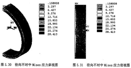 從Mises應(yīng)力云圖中可以看出,最大應(yīng)力出現(xiàn)在900位置。在外橡膠圓環(huán)外圈的應(yīng)力比內(nèi)圈的應(yīng)力要大。