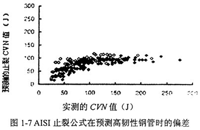 Bartell。兩步分析基于裂紋擴(kuò)展的減壓波速判據(jù),提出了行之有效的數(shù)學(xué)解法,實(shí)現(xiàn)了直接由管道工作參數(shù)推斷出止裂所需的臨界CVN沖擊韌性。后來又總結(jié)了一系列簡便的經(jīng)驗(yàn)公式。在當(dāng)時(shí)的條件下,全尺寸爆破實(shí)驗(yàn)中所用的管線鋼CVN沖擊韌性一般不超過100J,CVN沖擊韌性足以描述不同鋼種的抗斷裂性能,雙曲線模型和經(jīng)驗(yàn)?zāi)J蕉寂c全尺寸爆破實(shí)驗(yàn)的結(jié)果吻合得很好。