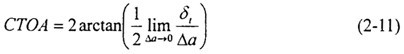 裂紋尖端張開角CTOA(Crack Tip Opening Angle)最早被用來(lái)分析核電站管路的穩(wěn)態(tài)裂紋擴(kuò)展,后來(lái)用于輸氣管線和航空工業(yè)。如圖2-2,與裂紋張開角COA不同,CTOA對(duì)應(yīng)于一定的斷裂擴(kuò)展?fàn)顟B(tài),不隨測(cè)量點(diǎn)的位置而改變。CTOA在數(shù)學(xué)上可以按下式定義: