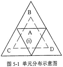 以二維情況為例,計算圖5-1中A點(diǎn)梯度可選C→B→D→C作為積分路徑,但為了保證積分的精度,最好使積分路徑構(gòu)成的封閉體形心與計算點(diǎn)重合,或至少比較接近。
