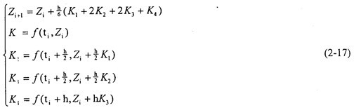 由于上式是一個(gè)非線性時(shí)變方程組,它的理論解無法得出,故采用數(shù)值解法求解。為了便于計(jì)算,將方程組(2-15)轉(zhuǎn)化到狀態(tài)空間中,將方程組表達(dá)成: