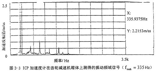 由于齒輪減速機(jī)是由齒輪、傳動軸和軸承等傳動部件及箱體、箱蓋等支撐部件紅成,傳動部件在發(fā)生故障時,故障振動頻率可覆蓋幾Hz至數(shù)kHz的范圍。因此,齒輪減速箱的振動信號不能采用位移和速度傳感器來拾取,而只能用加速度傳感器來拾取。通常加速度傳感器一般采用電荷輸出型的壓電加速度計,這種加速度計體積小、重量輕、價格便宜。但由于它要和電荷放大器配合使用,因而在傳感器與阻抗變換放大器之間就有一段高阻抗信號輸送的聯(lián)接,故降低了系統(tǒng)的低頻性能、分辨率、抗干擾能力和穩(wěn)定性等方面水平。為了改變這種現(xiàn)象,便發(fā)展了集成形式的壓電傳感器-即ICP加速度計,它將阻抗變換放大器封裝在傳感器的剛性殼體內(nèi)。