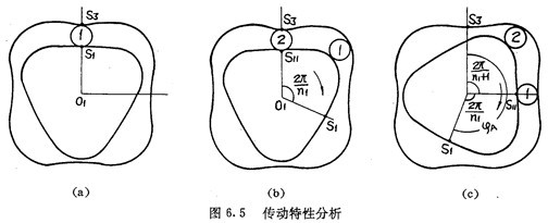 節(jié)曲線形狀如圖6.6所示。圖6.2為該輪系加上輪齒后的情形。按(6.34)式可算得相鄰兩行星輪之間的夾角隨