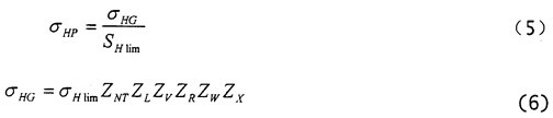 大、小輪在節(jié)點和單對齒嚙合區(qū)內(nèi)界點處的計算接觸應力中的較大值σH,均應不大于其相應的許用接觸應力σHP,即: