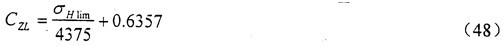 其中,在850N/mm2≤σHlim≤1200N/mm2范圍內(nèi),CZL可由式(50)算得。當σHlim<850N/mm2時以850N/mm2時以850N/mm2時以850N/mm2計,當σHlim>1200N/mm2計。