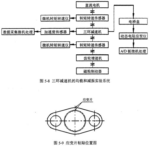 均載和減振實驗的主要任務(wù)是測試加裝彈性均載環(huán)前后,三環(huán)減速機載荷分配不均勻系數(shù)KP的大小及其減速機振動的情況,并且驗證用間隙元計法計算載荷分配不均勻系數(shù)KP的理淪的正確性及均載環(huán)的減振效果。