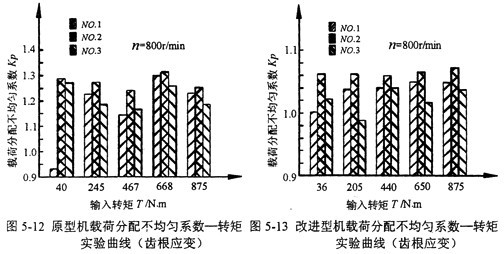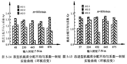 對三環(huán)減速機原型機和改進型機進行效率實驗,在相同的傳動條件下,改進型機的效率略高于原型機,在額定轉(zhuǎn)速和額定轉(zhuǎn)矩下,傳動效率可達92%。對三環(huán)減速機原型機和改進型機的環(huán)板齒根彎曲應力和環(huán)板薄弱部位應力進行測量,進行載荷均衡實驗。結(jié)果表明改進型機具有很好的均載效果,實驗還驗證了載荷分配不均勻系數(shù)耳的理論計算方法的正確性及實際多少對齒嚙合問題。