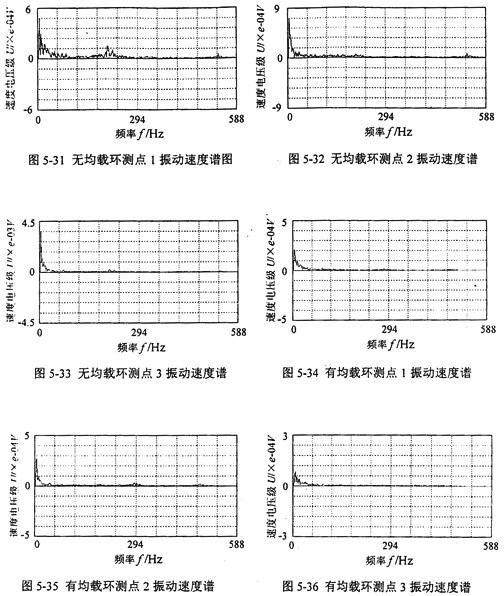 由表5-8、5-9可得:隨著輸出扭矩的增加,三環(huán)減速機原型機和改進型機的軸承座振動有效速度增加,也就是說,隨著載荷的增大,各軸承座的激振力也增大。在相同的傳動條件下,三環(huán)減速機改進機軸承座振動有效速度比原型機的小,均載環(huán)減振效果明顯。