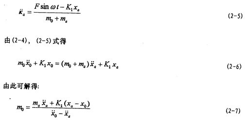然后取下質(zhì)量ma,維持推力不變,在振動臺上另加一質(zhì)量mb,重復(fù)以上試驗(yàn),由式(2-7)算得m0,將兩次試驗(yàn)所得m0取平均值,得到圈質(zhì)量。