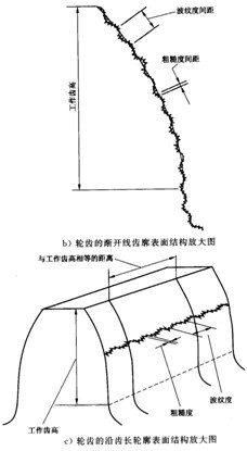 波紋度輪廓的不平度(見(jiàn)3.2.2.2)。它是表面形狀特性的一種組成成分,粗糙度是疊加在它的上面的(見(jiàn)圖1a,b,c)。通常,加工的齒輪輪齒表面的波紋度間距顯著大于粗糙度間距。