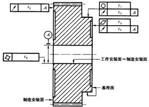 滿(mǎn)足此要求的最常用的方法是確定基準(zhǔn)軸線(xiàn)使其與工作軸線(xiàn)重合,即將安裝面作為基準(zhǔn)面