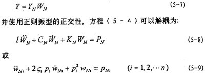 經(jīng)正則坐標(biāo)變換,雖然得到互不耦合的線性微分方程組(5-9),但是(5-9)式仍然不能像單自由度振動(dòng)系統(tǒng)那樣求解,因?yàn)椋?-9)式中的激勵(lì)力包含未知的振動(dòng)位移y