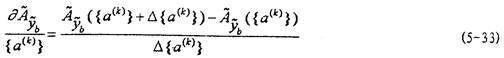[J3]的計(jì)算實(shí)際上就是偏導(dǎo)數(shù) {fj({ a(k)})}/ { a(k)}的計(jì)算。計(jì)算方法與計(jì)算 {q({ a(k)})}的方法類(lèi)似,故不再贅述。對(duì)于[J2],[J3]、分別有式(5-34)、(5-35)。