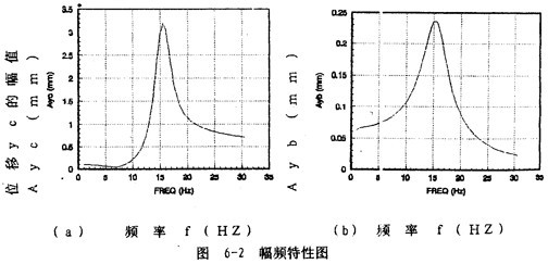 (虛線)。從這兩圖中曲線的比較還可以知道,鋼絲繩聯(lián)軸器對圓盤振幅的影響在不同頻率段效果是不相同的?偟膩碚f,在頻率12.7~18.3赫茲區(qū)域外,聯(lián)軸器對圓盤振動(dòng)是起減振作用的,這一特性可以從圖6-1(c)清楚地看到。但在此頻率范圍內(nèi),聯(lián)軸器對圓盤振動(dòng)是增大作用的。