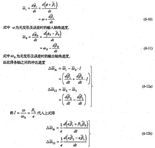 由于減速器機(jī)構(gòu)的變形及各構(gòu)件的誤差,使各傳動(dòng)軸的角速度及角加速度不再滿足條件式(6-8)及式(6-9),亦在運(yùn)轉(zhuǎn)過(guò)程中各軸之間存在角速度及角加速度的沖擊現(xiàn)象。該沖擊將直接導(dǎo)致系統(tǒng)振動(dòng),使輸出速度產(chǎn)生波動(dòng)、降低其輸出的穩(wěn)定性,并產(chǎn)生沖擊載荷。