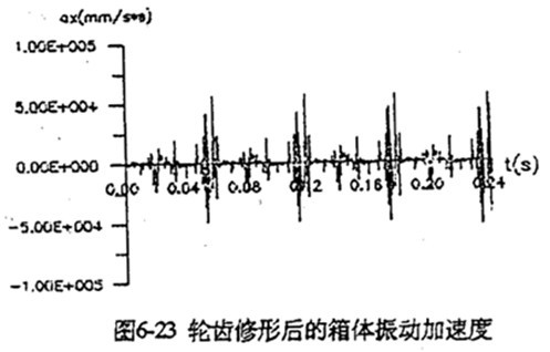修形,使三相載荷均衡化。圖6-23是將死點(diǎn)位置輪齒修形后,軸承座的振動(dòng)加速度圖。與圖6-21(a)比較,總體幅值明顯下降。