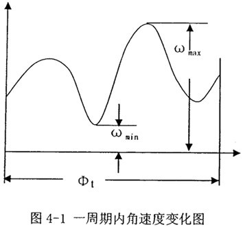 如圖4-l所示為在一個周期內(nèi)等效構(gòu)件角速度的變化曲線,其平均角速度田。在工程實(shí)際當(dāng)中,常用其算術(shù)平均值來表示,即ω