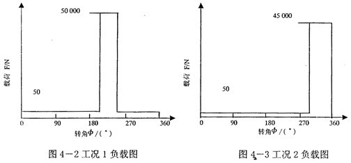 現(xiàn)假設(shè)有兩種運(yùn)行工況,其負(fù)載分別如圖4-2、圖4-3所示。通過兩種具體沖壓載荷情況來分析柔性速度補(bǔ)償裝置的補(bǔ)償性能。