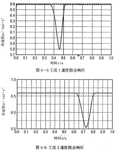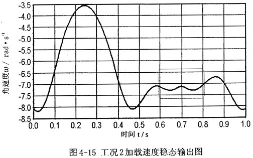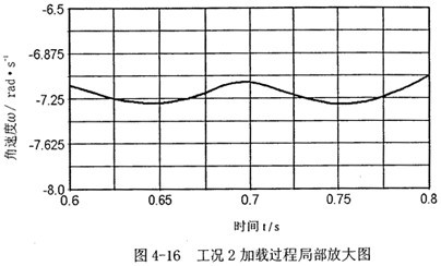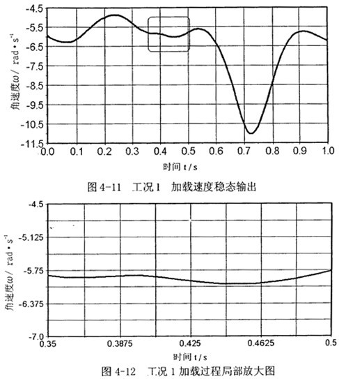 圖中慮線表示空載情況下ω的穩(wěn)態(tài)響應(yīng),可見很快達(dá)到穩(wěn)定,速度濾動很小,實(shí)線表示加載過程ω的穩(wěn)態(tài)響應(yīng)。顯然,在加載時段,當(dāng)載荷驟增時,會導(dǎo)致速度大幅降低。