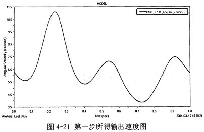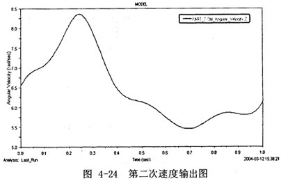 (2)在adams下建立的樣機(jī)模型里,將上述速度值設(shè)置到第二輸入中,設(shè)置好后,進(jìn)行仿真。得到輸出速度圖4-21。