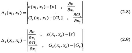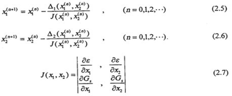 方程組(2.4)的求解,實際上是兩條限制曲線交點的求法,如圖(2.2)所示。根據文獻,求點X1和X2,用牛頓法迭代,逐步逼近到交點。其迭代程序如下: