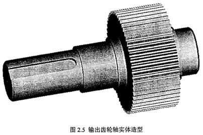 圖2.5為本文雙環(huán)減速器輸出齒輪軸實體造型圖。圖2.6為本文雙環(huán)減速器實驗樣機的裝配圖的俯視圖。本文的雙環(huán)減速器實驗樣機,采用一種新型的環(huán)式行星傳動裝置。