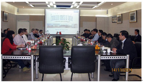 南高齒胡董事長對GE的來訪表示熱烈的歡迎,并致歡迎辭。南高齒風電設備工程師向GE一行介紹了公司的總的發(fā)展情況,包括人員、產(chǎn)值、設備、試驗臺、產(chǎn)能、新廠區(qū)的建設等,并總結了2011年風電齒輪箱(主齒輪箱以及偏航變槳齒輪箱)的發(fā)貨情況,2011年主齒輪箱的發(fā)貨量將超越1000臺,偏航齒輪箱、變槳齒輪箱均將超過1000套,這也是南高齒與GE合作以來首次年度發(fā)貨量同時超越1000。