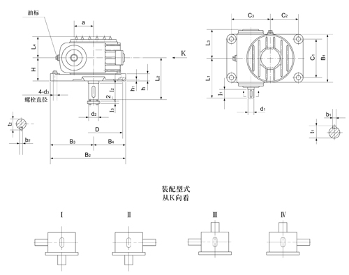 減速器的蝸桿軸可正、反兩個(gè)方向運(yùn)轉(zhuǎn),輸入轉(zhuǎn)速不超過(guò)1500r/min,工作環(huán)境溫度為-40~+40℃,當(dāng)工作環(huán)境溫度低于0℃時(shí),起動(dòng)前潤(rùn)滑油必須加熱到0℃以上;當(dāng)工作環(huán)境溫度高于40℃時(shí),必須采取冷卻措施。