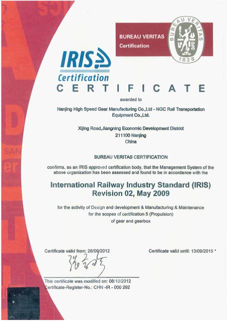 近日,南京高精傳動設(shè)備制造集團(tuán)有限公司(簡稱:南高齒)子公司南京傳動軌道交通設(shè)備有限公司獲得IRIS(國際鐵路行業(yè)標(biāo)準(zhǔn))認(rèn)證證書,標(biāo)志著南京傳動軌道交通設(shè)備有限公司質(zhì)量管理水平與國際水平進(jìn)一步接軌,為公司軌道交通產(chǎn)品進(jìn)一步拓展國際鐵路高端市場奠定了堅實(shí)的基礎(chǔ)。同時,成功獲取IRIS認(rèn)證也是南高齒質(zhì)量戰(zhàn)略步驟的重要一環(huán),它進(jìn)一步保證了南高齒為國際軌道交通領(lǐng)域提供高質(zhì)量和性能突出的傳動產(chǎn)品。