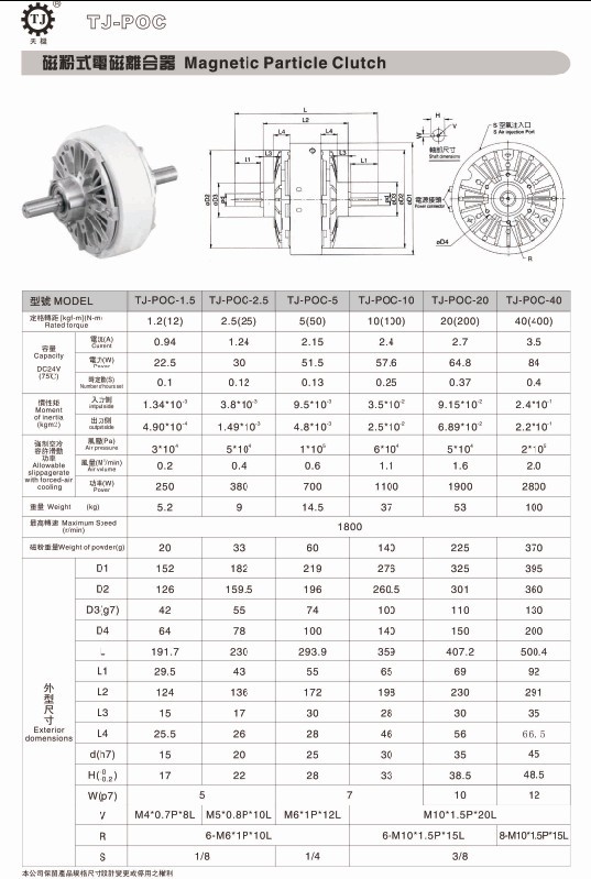 天機TJ-POC電磁式磁粉剎車器被廣大用戶通稱為磁粉制動器。天機磁粉剎車器的用途有1、緩沖起動,停止用:利用連結時的圓滑特性及定轉矩特性達到緩沖起動和停止。2、連續(xù)滑動、張力控制用, 3、轉矩限制器用, 4、高速應答用, 5、動力吸收用 ,6、定位停止用 ,7、模擬負載用。