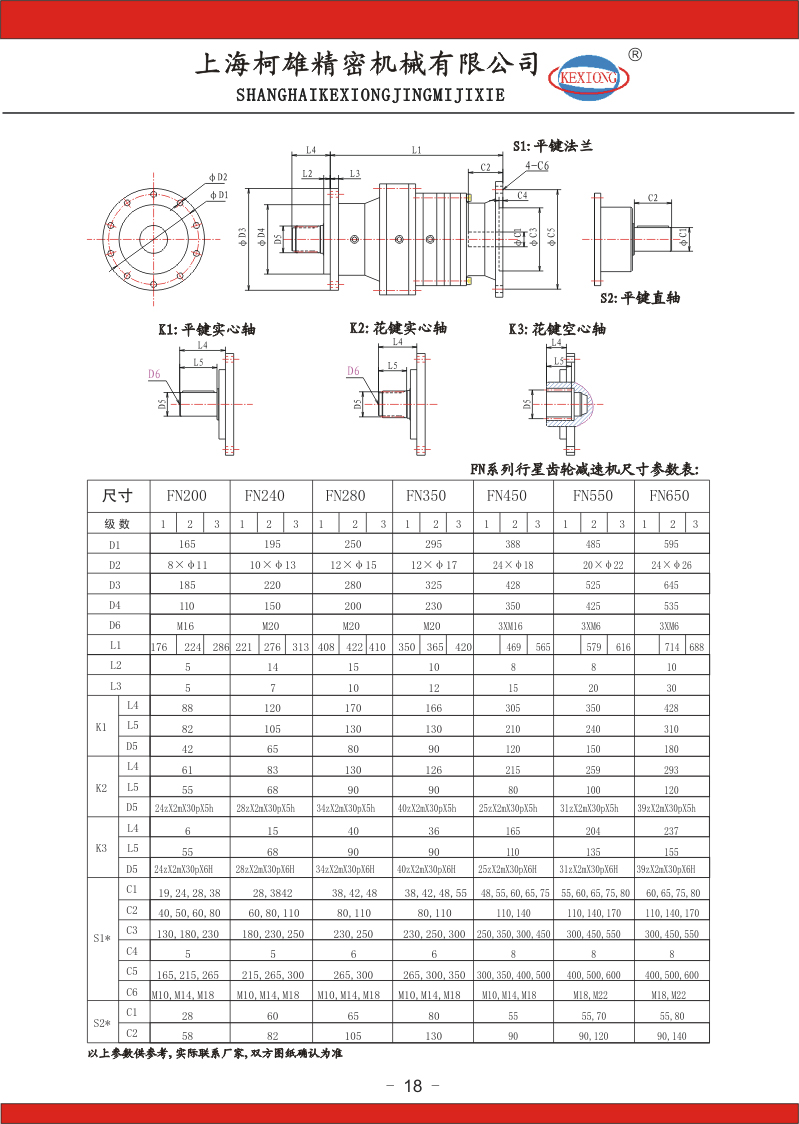 FN系列行星齒輪減速機(jī)尺寸及參數(shù)表: