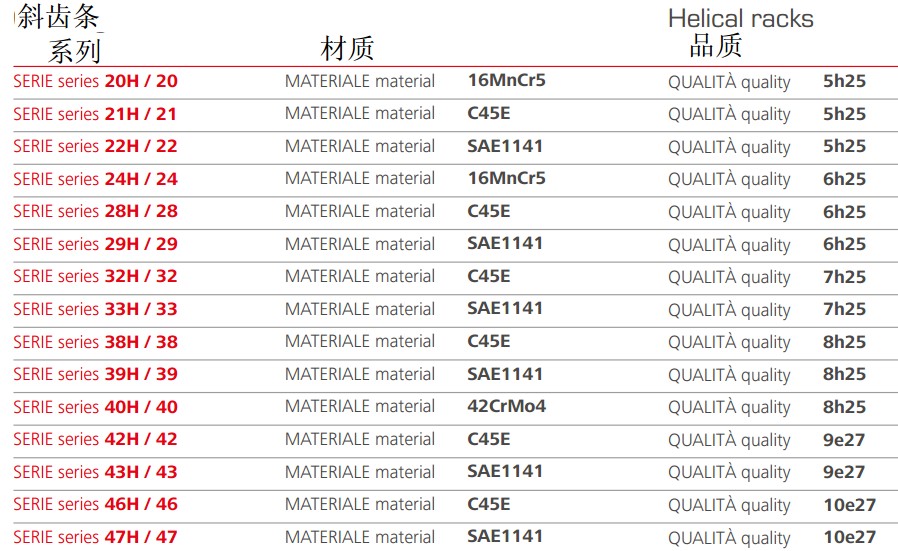 Gambini可使用不同類型的原材料生產(chǎn)高精度的直齒條和斜齒條。我們生產(chǎn)的齒條模數(shù)范圍為0.530,品質(zhì)等級(jí)范圍為510。品質(zhì)等級(jí)為5的齒條最大長(zhǎng)度為1000mm,如果品質(zhì)等級(jí)為6,可生產(chǎn)的單件長(zhǎng)度可達(dá)2000mm.