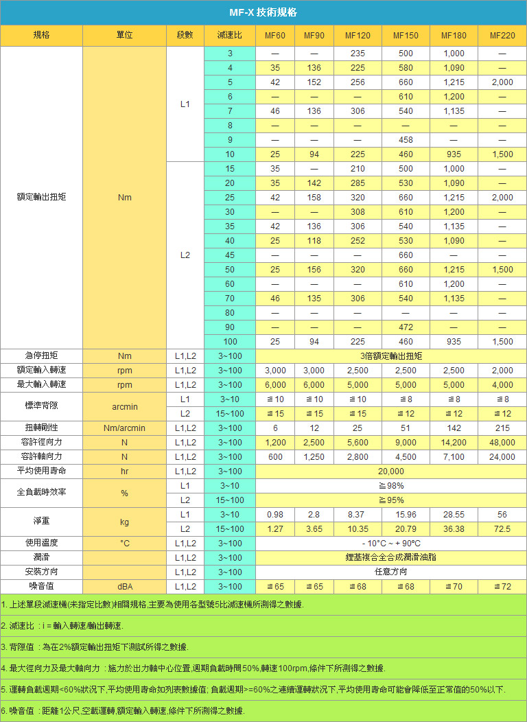 四.MF-X系列具體型號(hào):MF60XL1,MF60XL2,MF60XL3(減速機(jī)數(shù)比3~100)MF90XL1,MF90XL2,MF90XL3(減速機(jī)數(shù)比3~1000)MF120XL1,MF120XL2,MF120XL3(減速機(jī)數(shù)比3~1000)MF150XL1,MF150XL2,MF150XL3(減速機(jī)數(shù)比3~1000)MF180XL1,MF180XL2(減速機(jī)數(shù)比3~1000)
