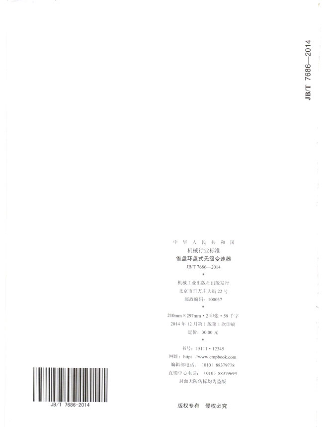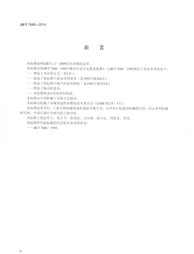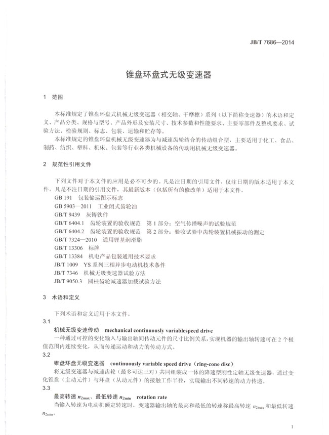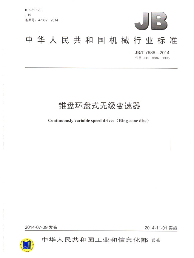 錐盤環(huán)盤式無(wú)級(jí)變速器(JB/T7686-2014)