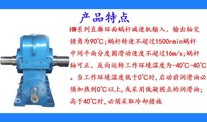 HW系列直廓環(huán)面蝸桿減速機輸入、輸出軸交錯角為90℃;